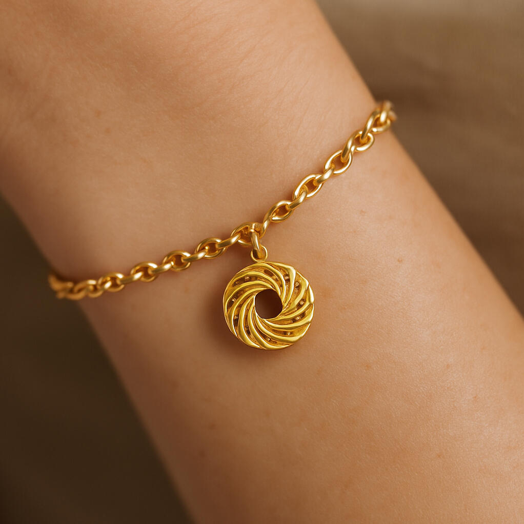 le stesse linee pulite e i riflessi controllati diventano un gioiello per la caviglia elegante e contemporaneo
